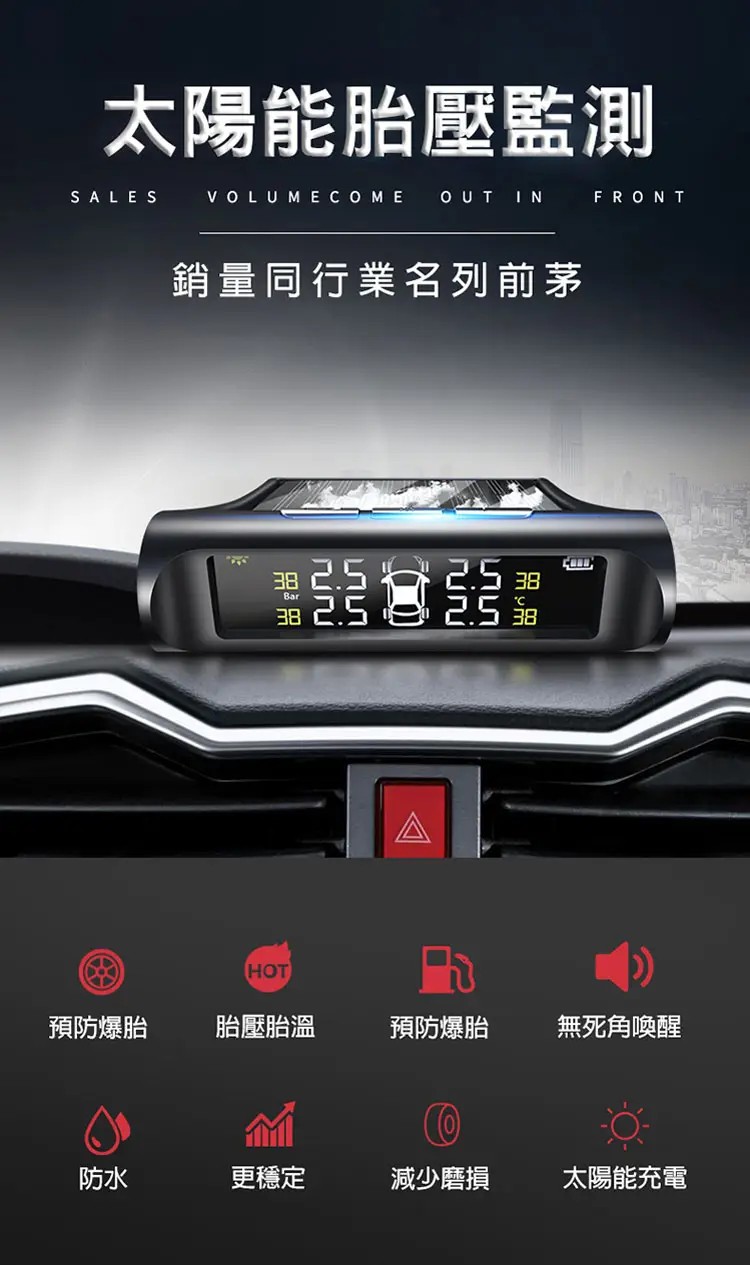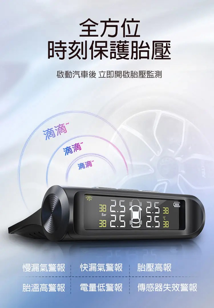 5分鐘前【官方站】太陽能無線胎壓監測器 輪胎盡在掌控!【太陽能 胎壓監測器】漏氣警報,胎壓警報,胎溫警報【太陽能電光板】無需佈線,可任意擺放!適用於所有輪胎,安裝超簡單,一看就會! - 【太陽能 胎壓監測器】